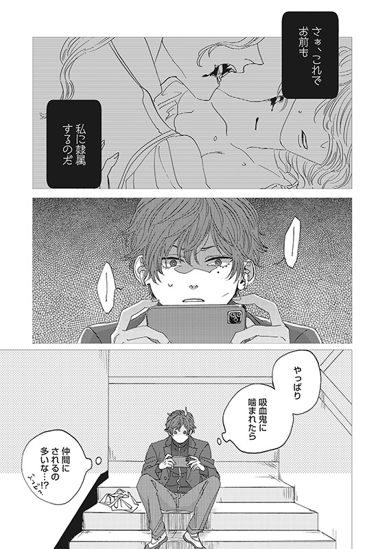 不運が続き、ケガの絶えない日々を送る高校生・睦月。 ある日、下校中に事故に巻き込まれかけたところを、 長身で息をのむほど美しい男・ケイが救う。 お礼に自宅へ招いたはずが、気づけばその唇に囚われ、血を吸われていた。 痛みも恐れも、すぐに甘く溶けていき──。