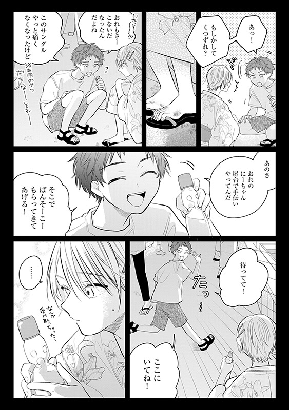 靴擦れをして動けなくなっていたところに、無邪気に話しかけてくる一人の少年との記憶。