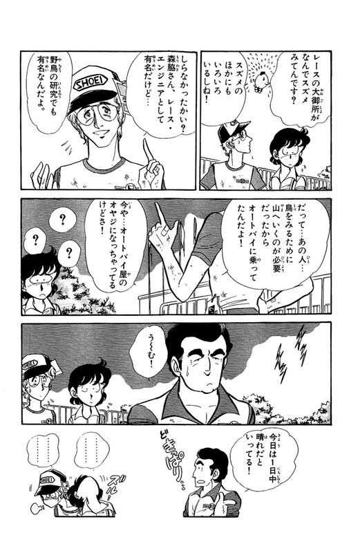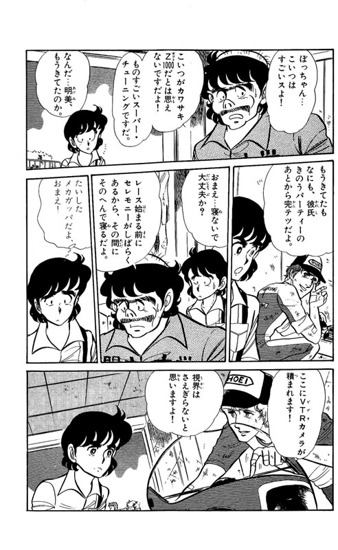 サバンナRX-3のロータリーエンジン12Aの音が背中にはりつきそうになったとき、無意識のうちに右手はスロットルを全開位置にしていた…後輪の滑る音と同時にカワサキZ400FXの心臓も嫌な音を立てて2気筒死んだ…。ガードレールを突き破ったRX-3は、だれがみたってキロいくらの鉄クズになり果てていた。FXのDOHCもだらしがねえやと思いつつ、205キロの糞重い車体を押しつつ登る坂道は、FXの入院費をどうやって払おうかと考える──沢渡鷹、17歳の秋。彼は愛車を直すために訪れたバイクショップで、奥多摩を恐るべき速さで走るもうひとりの「鷹」の存在を知る…!
