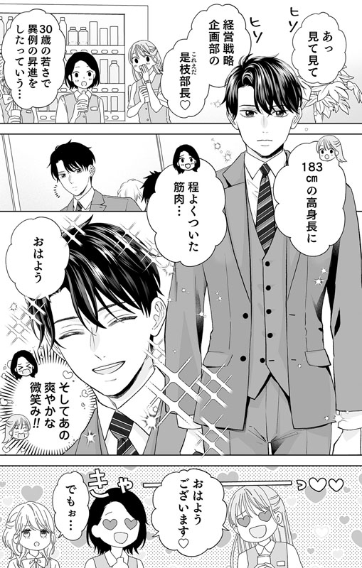 是枝彪は30歳の若さで異例の昇進をしたエリートサラリーマン。モテモテだが、本人に結婚願望はない。実は生い立ちが複雑で結婚の良さが分からないのだが、そんな事を知らない女子社員達からは熱い眼差しを向けられている。