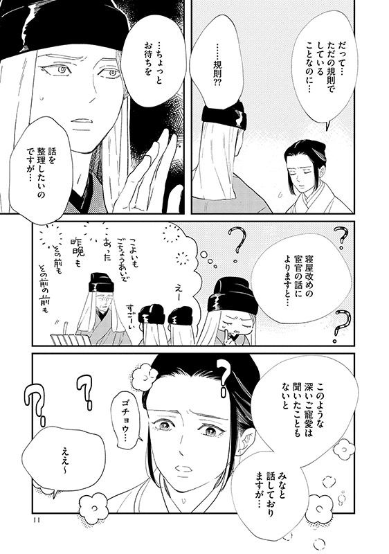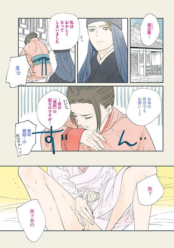 皇帝に見い出され、妹の身代わりに妃として後宮で閨を共にし、昼は河工事の役人として働くことになる。