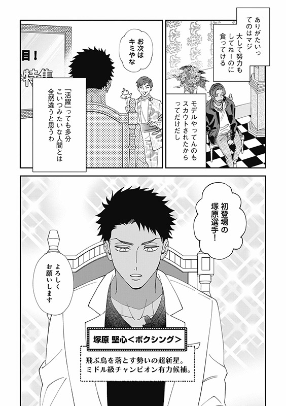 いま、飛ぶ鳥を落とす勢いで活躍中のプロボクサー・塚原堅心(つかはら けんしん)だ。