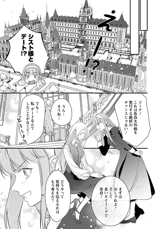 ジーナは聖女アメリアのアドバイスのもと、告白大作戦を実行することに!