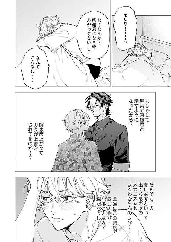 大学生の多々良(たたら)は、よく夢を見る。最近よく見るのは『ガク』という友達の夢。 ガクは夢の中でしか会えない架空の友達だけど、優しくて明るい彼と一緒にいると楽しいし癒やされる。正直 夢で会えるのが嬉しくて、寝るのが楽しみになってるくらいだ。 そんなある日、いつものように夢の中にガクが現れたと思ったら、突然押し倒されて…!?【フィカス】