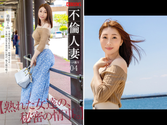 この作品は、色気溢れる甘美な淑女が魅せるリアルドキュメンタリー作品である。本日お越しくださった人妻は39歳の美晴さん。 結婚6年目、5歳のお子さんがいると話す美晴さん。旦那様との仲は良好で、幸せな日々を送っているそうですが、旦那様とのセックスに飽きてしまったという理由でこの度ご応募くださいました。 ※掲載されているすべてのモデルは撮影当時20歳以上であることを確認済みです。