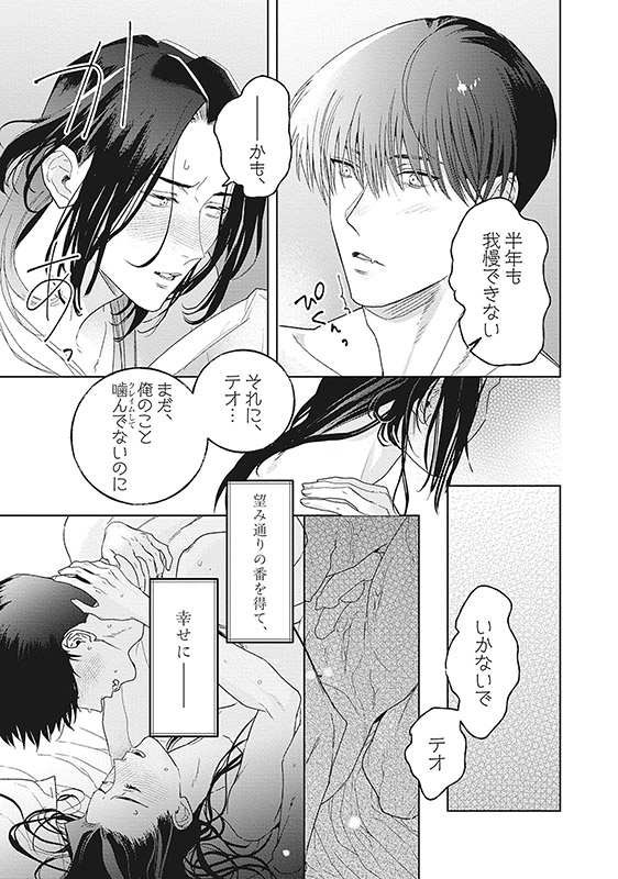 しかし、テオはクレイムする前に出征し、二人は離れ離れになってしまう。半年後に戻ってきたものの、未踏は番契約を破棄し、《学園》へと姿を消してしまい…!?