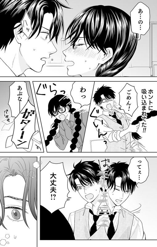 仕事の話をしていたはずが、アクシデントで急接近!!思わず、キ…。いや、会社だから!!