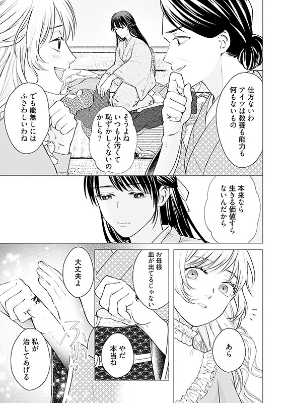 忌避子として迫害される日々の中、生きるために耐え忍ぶ日々を送っていた。