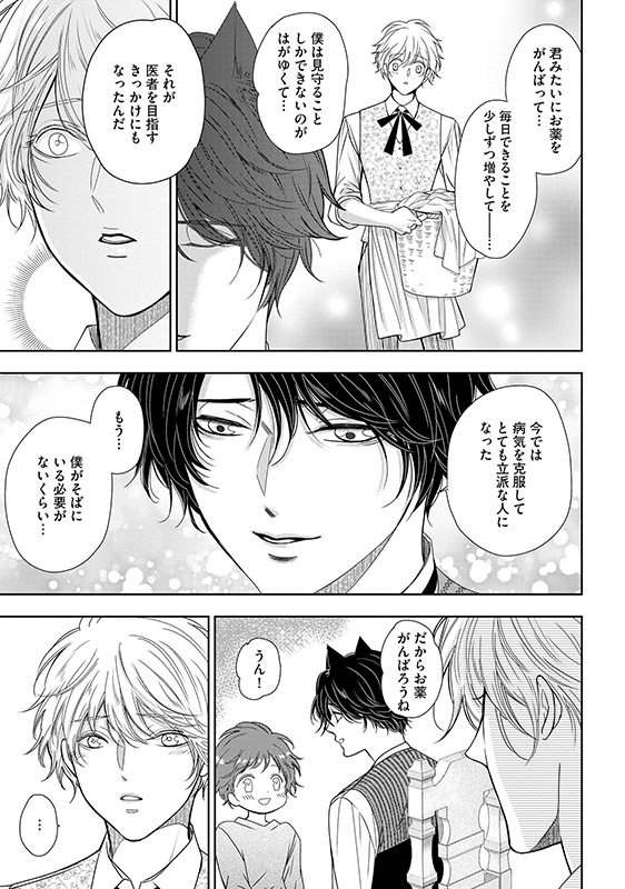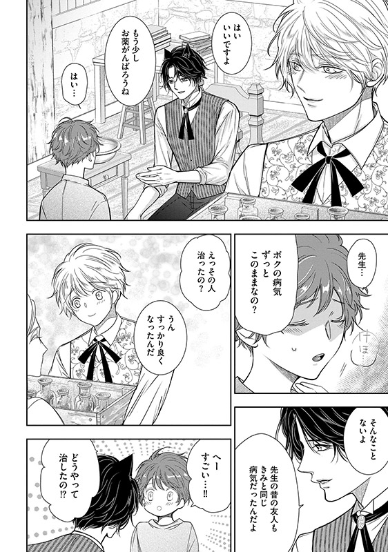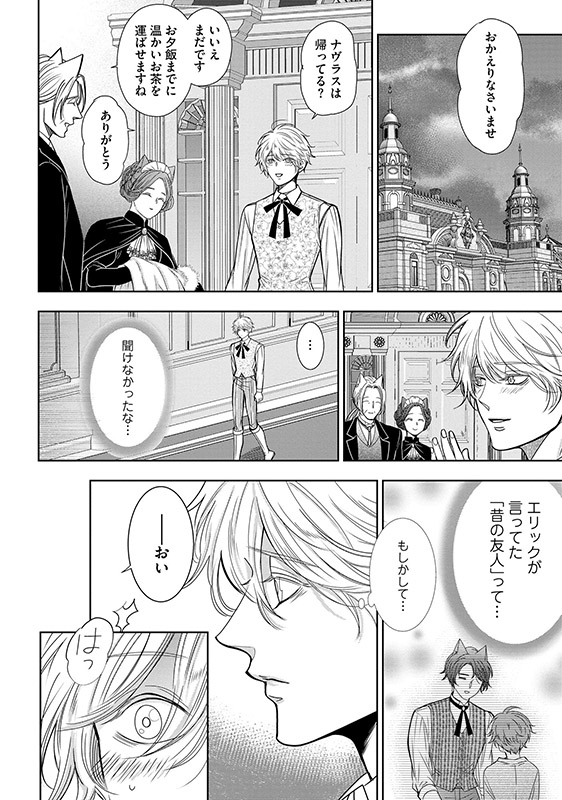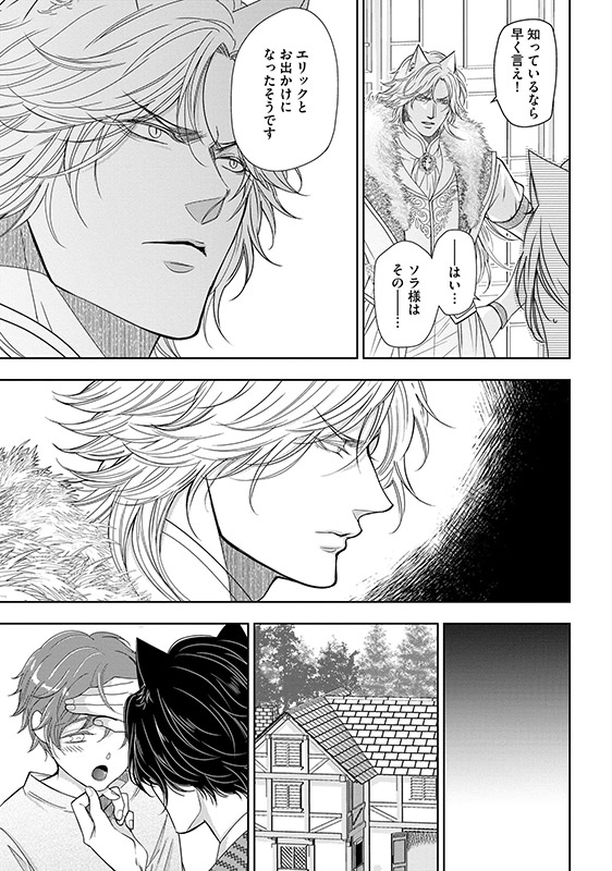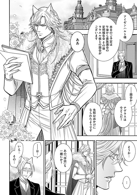 狼人ライカンスロープが統治する国で、ひっそりと暮らしていた天涯孤独な青年・ソラ。 働いている娼館に訪れたナヴラスという獣人に身請けされ、紆余曲折を経て、ナヴラスと身も心も結ばれ、伴侶として幸せな日々を送っている。 そんな中、ナヴラスと旧知の仲であるアイゼンハルトに招かれ、二人は北の地を訪れることになるが……!?
