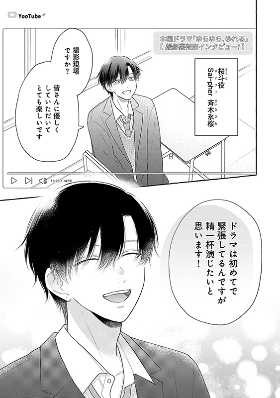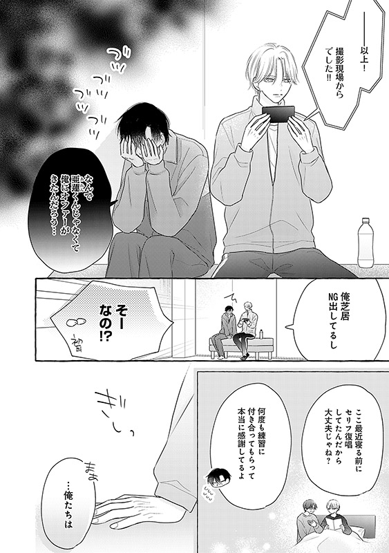 ついに凪演じるキャラクターへの告白シーンの撮影日になるが、役柄と自分の好意を重ねてしまい緊張は増すばかり。そんな姿を見かねた凪から告白練習をしないかと提案され、実践することに。