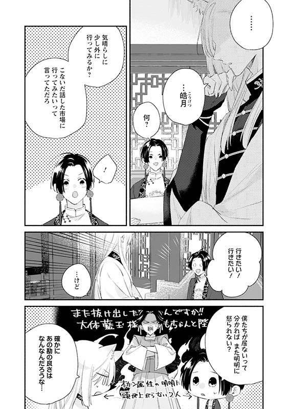 大陸東部の小国・翠(スイ)にて捕らわれた彼だが、実はそれも全て計算のうち。「ある目的」を果たすため、上手く宮廷への潜入に成功したのだった。