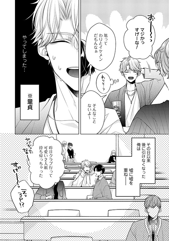咄嗟に経験人数10人と嘘をついてしまった童貞大学生・旭。