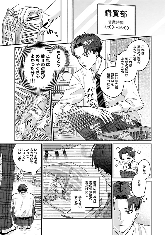 猫実とした勉強会のおかげでテストの点数が良かった輝人は、”友達として好き”発言にモヤつきつつも、お礼の品を選ぶべく、学校の購買で思い悩んでいた。