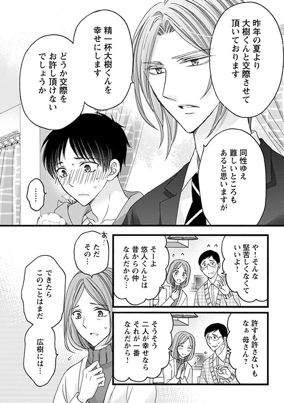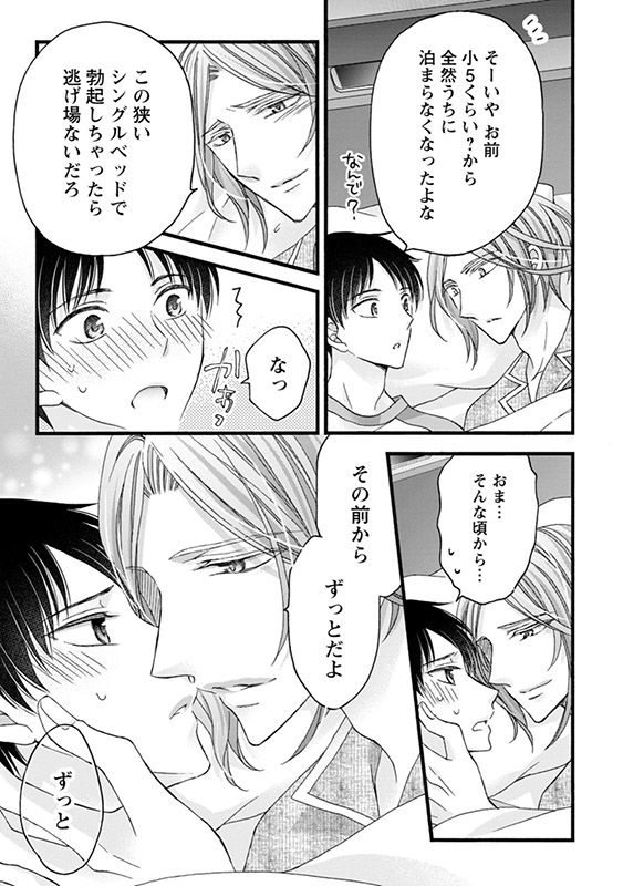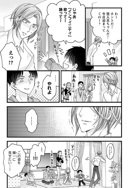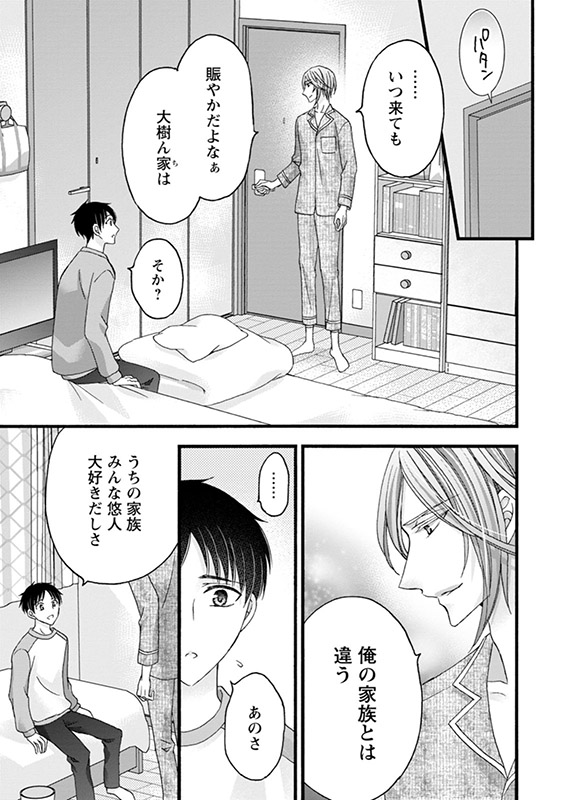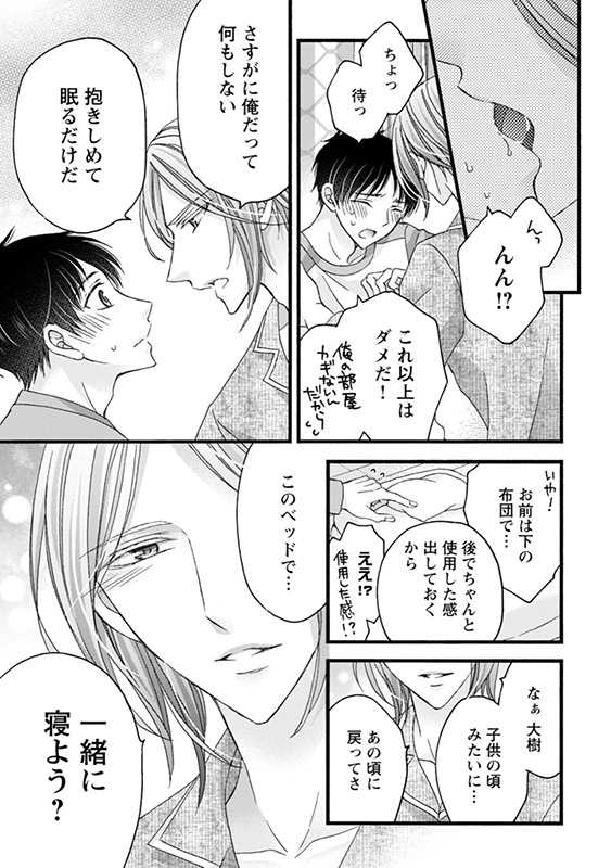 皆が寝静まった静かな家の部屋で狭いシングルベッドを軋ませて……大樹の両親にお付き合いの挨拶に行った悠人と大樹。「昔のように泊まっていったら?」という母の一言でお泊りが決まり――一方、輝一に精神的に依存し始めている自分に気づき距離を置こうとする瑠生。急に突き放され戸惑う輝一の前に瑠生を狙う男優の『拓磨』が現れ!?瑠生を守るために輝一は一人で乗り込み――!