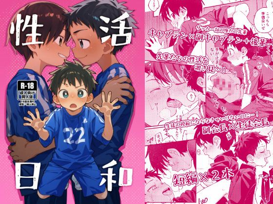 サッカー部キャプテン×副キャプテン+後輩くん、副会長×生徒会長の短編2本立てです。普段は頼られる立場の子たちが、学校内で隠れて性活している様子をお楽しみください。