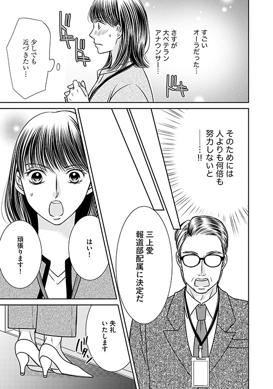 田舎生まれの三上愛は苦労の末、都内キー局でアナウンサーとして採用された。