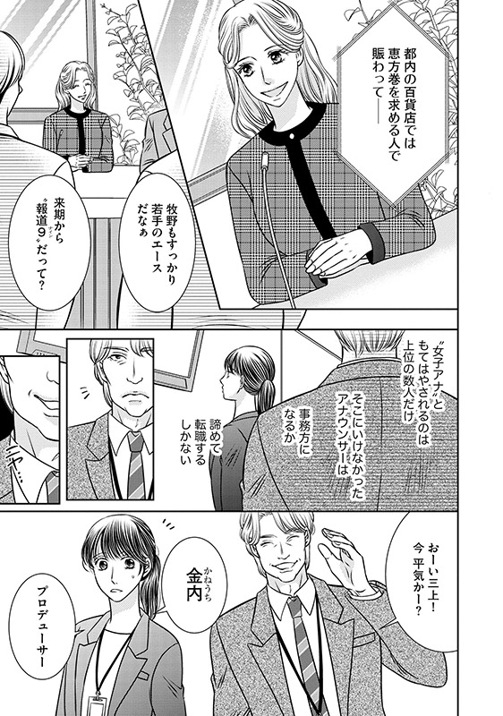 田舎生まれの三上愛は苦労の末、都内キー局でアナウンサーとして採用された。