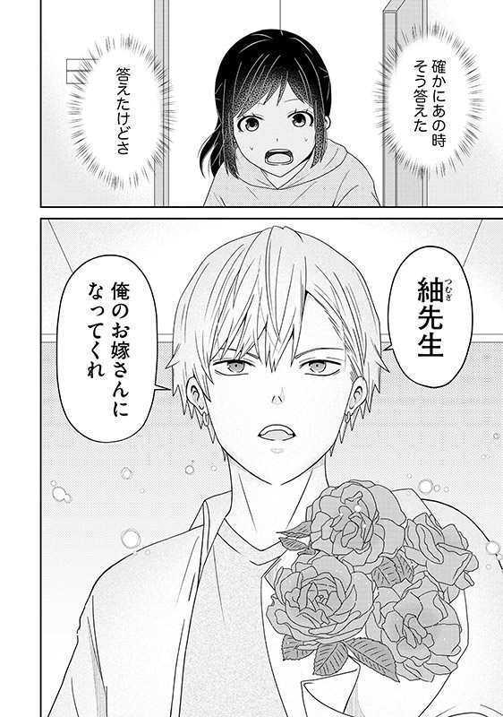 彼は紬が高校生の時、保育補助のバイトをしていた保育園で「僕のお嫁さんになって」と告白してきた男の子で、なんと紬が本当にお嫁さんになってくれると信じていたのだ…!