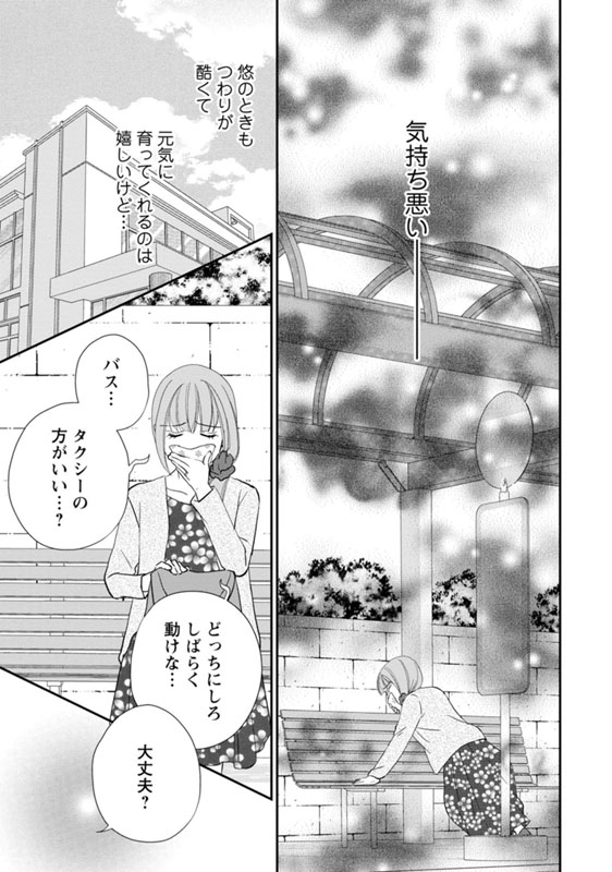 つわりに苦しむ愛を真木は車で雨谷家へと送っていくが、それを光に見られてしまう。平静を装いながら怒りをまとう光を目の当たりにした愛は思うのだった。