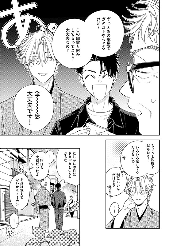 焦る伊織だったが大家たちとの飲み会のあと、部屋でユキヒサに触られてだんだん理性が保てなくなってくる。