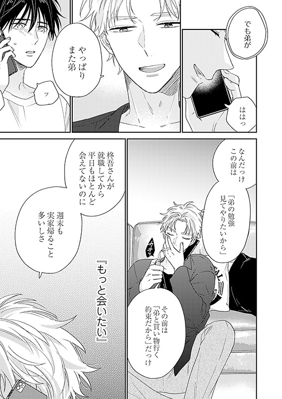 父と継母が亡くなり、大学生の義弟・凪(なぎ)と二人きりの家族になってしまった宇海柊吾(うかい しゅうご)。凪を守らなければ――兄としての使命感に燃え、実家に戻って同居することにしたけれど…オトナになった凪の色気に、なぜかドギマギ!?