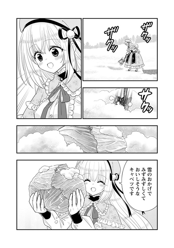 雪が降り積もるノルトエンデ村では、知恵と工夫で寒い季節を乗り切ります。アルドの冒険者仲間だったクルネは魔法が得意だけど、家事全般がとても苦手。でも心根はまっすぐ。そんな彼女は思わぬ告白を受け、自分の今後のことをまじめに考えてみることに…。 みんなで協力しあう優しさいっぱいの異世界スローライフ、コミカライズ第12巻!!!