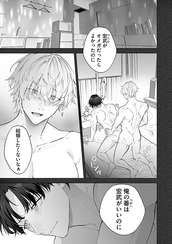 鼎こよち『オメガになれる薬、飲んでみた。』βの飯尾はαの五味とつきあっていたが、番になれず関係は終了。数年後、五味はビッチング薬を開発。飯尾はその薬を飲んでΩを体感してみることに!?