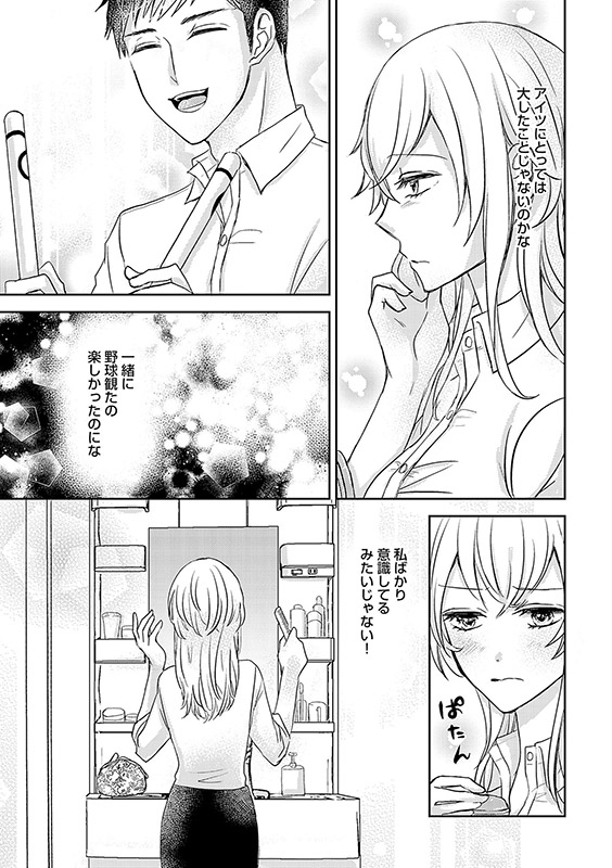 27歳OL・プロ野球ガチ勢の三森早希は、営業成績トップで敵認定していた同期・九野陽一郎と偶然球場で会ったことで意気投合、強引な九野に流されセックスまでしてしまう…。これは九野にとっても想定外の事態だったが、球場やホテルでの初めて見る早希の表情に惹かれた九野は早希に自分を好きと言わせることを決意して…!? ガチ勢だけに九野からの野球絡みの誘惑に早希は何度も流され、さらにエッチな関係を深めてしまう。そして関係が深まるごとに九野のことが気になり始める早希。そんな時、2人での福岡出張(泊まり確定!)が決まり、早希の気持ちはさらにざわついてきて…!?