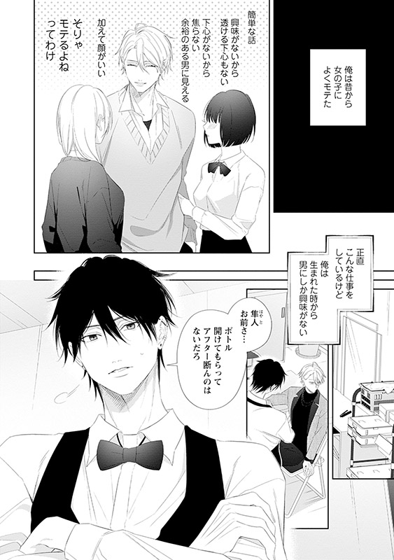 同じホスト店で働く景と隼人は、2人とも“ネコ”。ある日、仕事で嫌がらせを受けて落ち込む隼人に、景は「慰めてやる」と持ち掛けて…