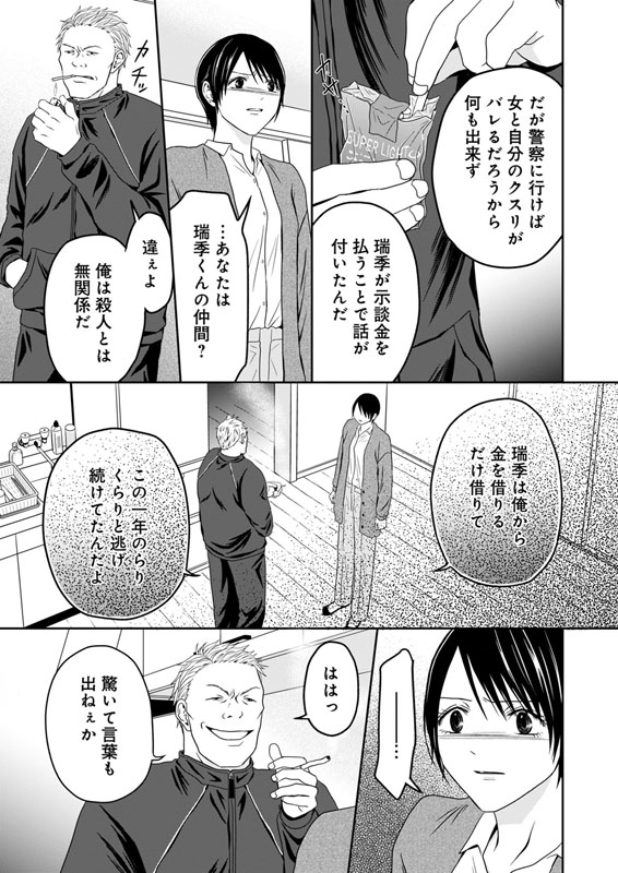 ある夜、物音で目を覚ました彼女の前には、部屋を断りなく漁っている瑞季の姿があった。焦燥した様子で金を強請る瑞季は、衝撃の事実を口にする…!?