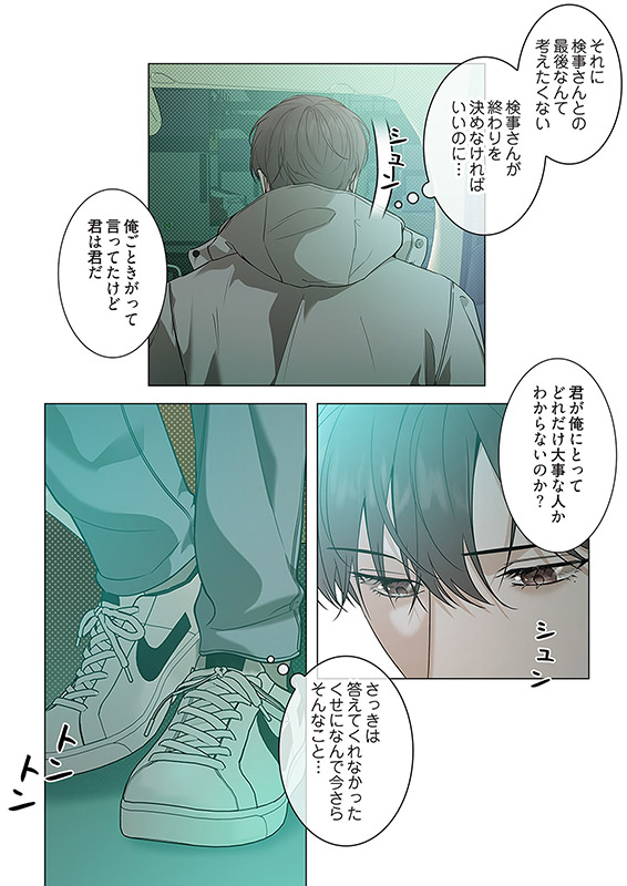 すべてに虚しくなっていた碧(あおい)の前に突然 現れたのは検事の縁家(えんや)で、彼は見知らぬ碧に衣食住を提供してくれるという。