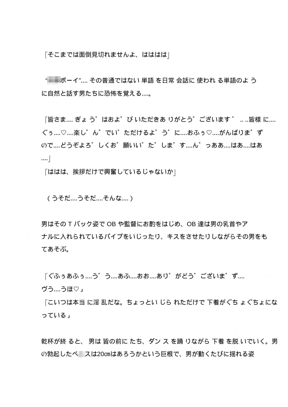 人気の部員を監督が媚○を使いながら時間をかけて○○し、精液風呂につけて精子に慣れさせ、客に差し出していく‥‥。