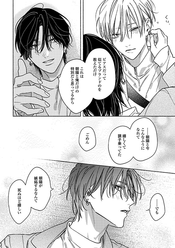 打算的でチャラくて、でもちょっと流されやすい朝陽(あさひ)と、そんな朝陽に長年執着しながらも、おくびにも出さないクールな幼馴染・仁(じん)。