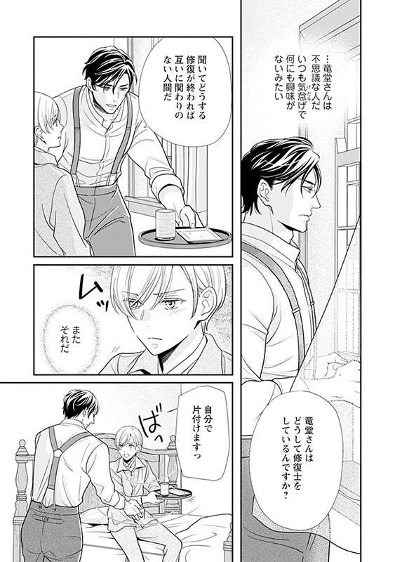 番を解消するため、修復士の竜堂と体を重ねる志真。