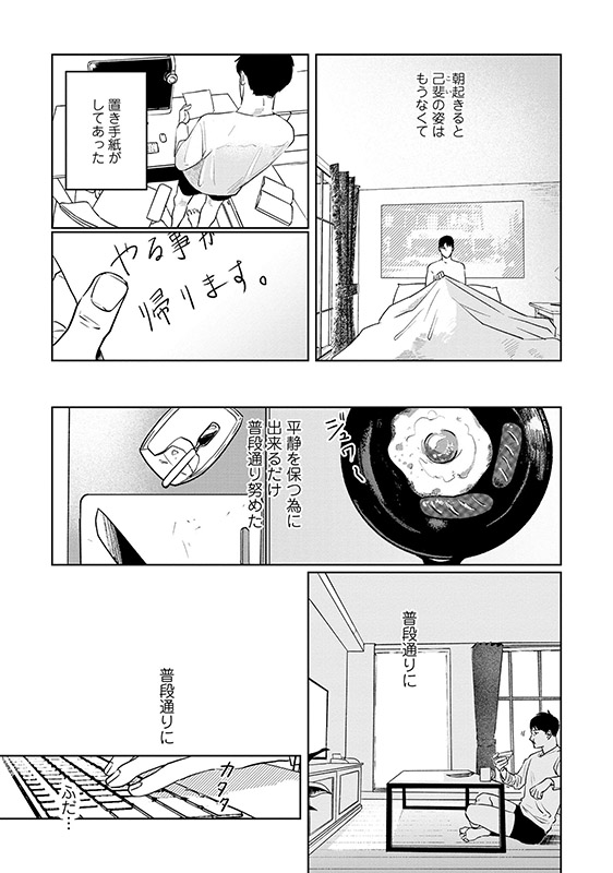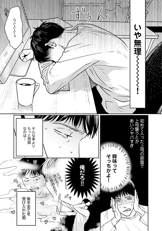 仕事以外での久々の会話に浮かれた臼井は、己斐をそのまま家に招き入れる。