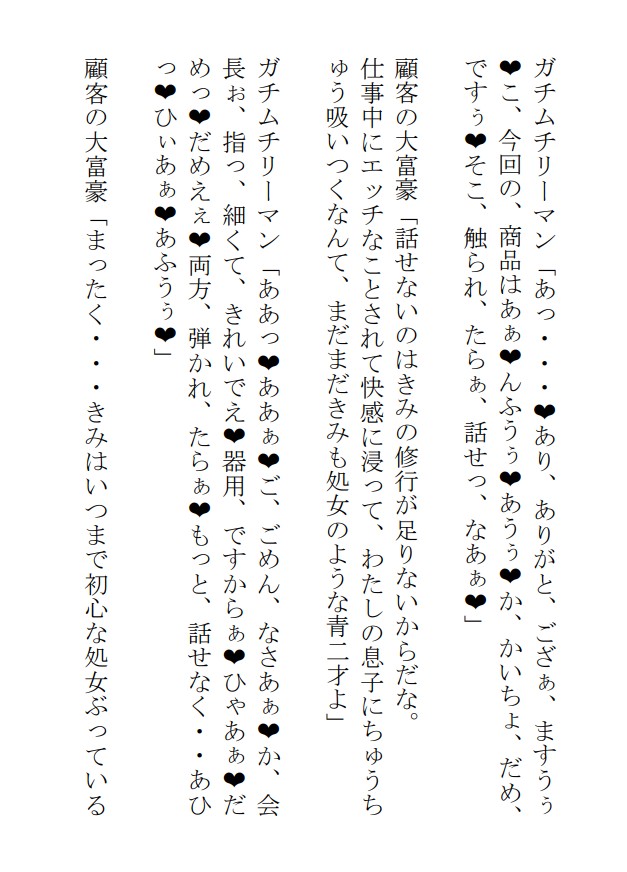 ガチムチリーマンたちが、上司だったり、取引先のお偉いさんだったり、金持ちの顧客だったりに脅されたり弱みを握られたり交換条件だったりで、がっつりどっぷりエッチするという内容。