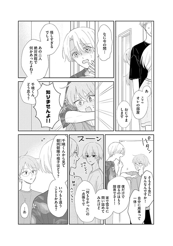 夏休みを迎えウキウキで海水浴デートに向かった朝陽と雪斗だったが、大雨の影響で帰宅できなくなってしまう。