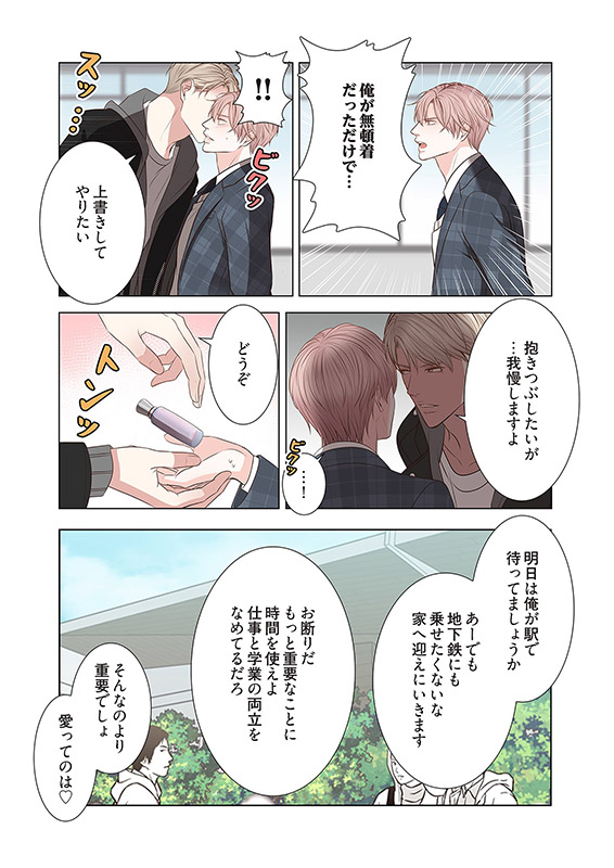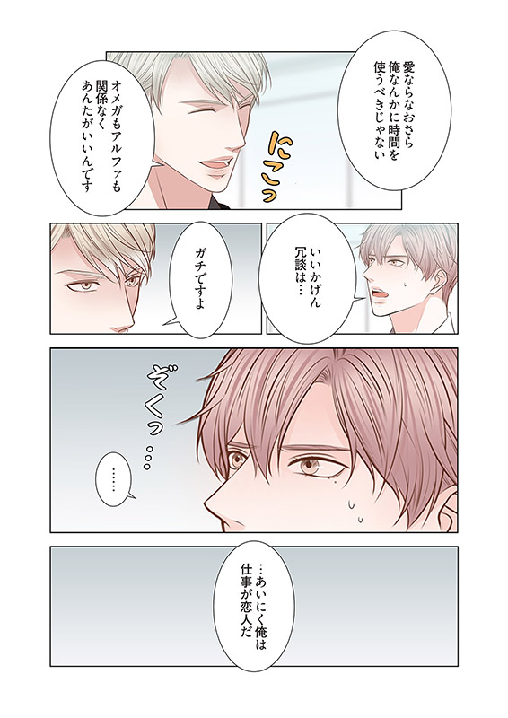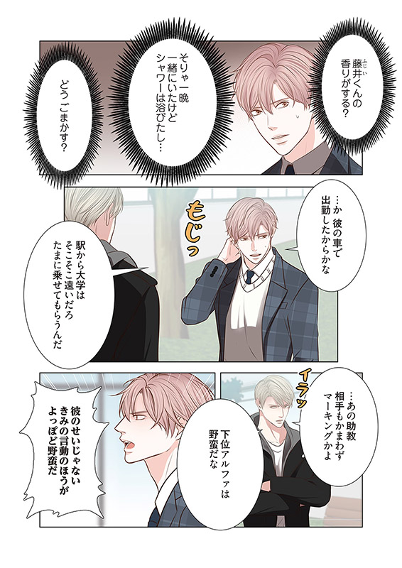 下位アルファに生まれた賢人(けんと)の望みは、兄より先に大学教授の座につくこと。彼が所属する社会学科に、開学以来の最年少教授としてやってきた優(ゆう)は明晰な頭脳の持ち主だった。無邪気で、尊大で、美しく、アルファらしさを備えた優には隠された秘密があって…!?