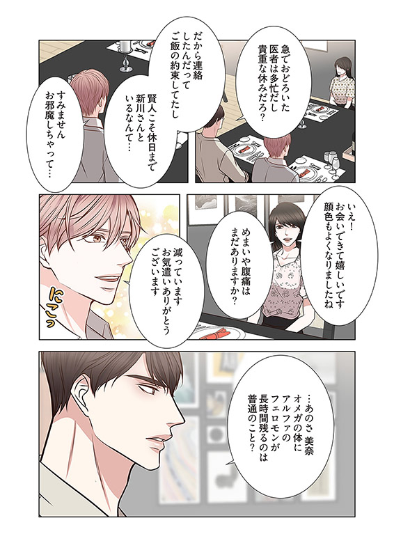 下位アルファに生まれた賢人(けんと)の望みは、兄より先に大学教授の座につくこと。彼が所属する社会学科に、開学以来の最年少教授としてやってきた優(ゆう)は明晰な頭脳の持ち主だった。無邪気で、尊大で、美しく、アルファらしさを備えた優には隠された秘密があって…!?
