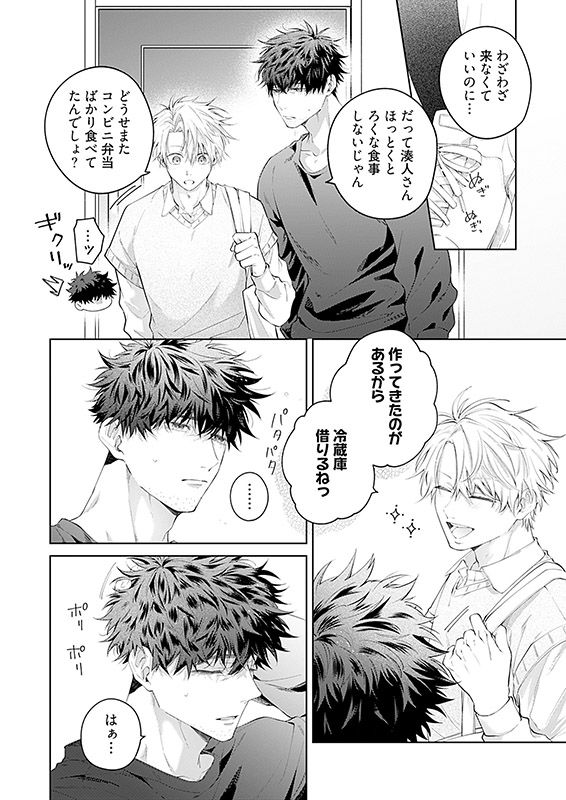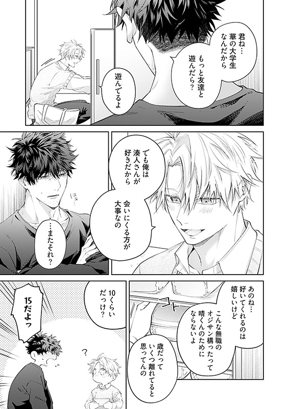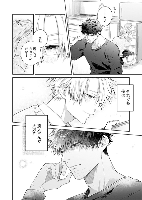 何度かわされても「湊人さんが好きだから」と気持ちを伝える晴。その健気な想いと支えは湊人の再生への道をゆっくりと切り開いていく――15歳差の一途な愛が未来を紡ぐ心温まるラブストーリー!