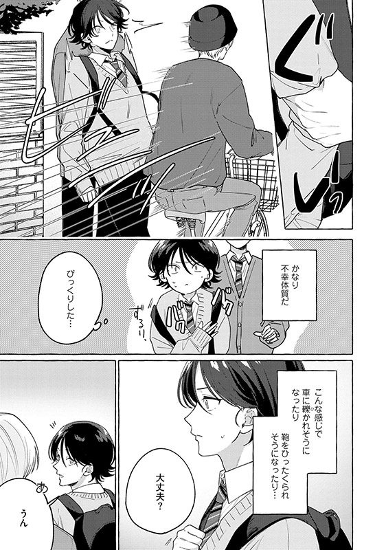 車にひかれかけたところを同級生の李一に助けられた叶羽。