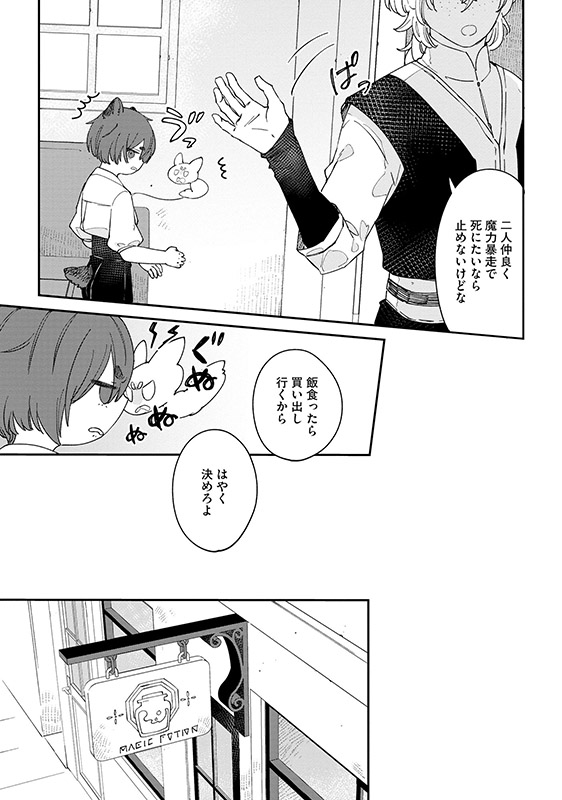 薬屋の青年ノイギアは、森の奥でふらふらと倒れかけた子グマの子どもを拾う。