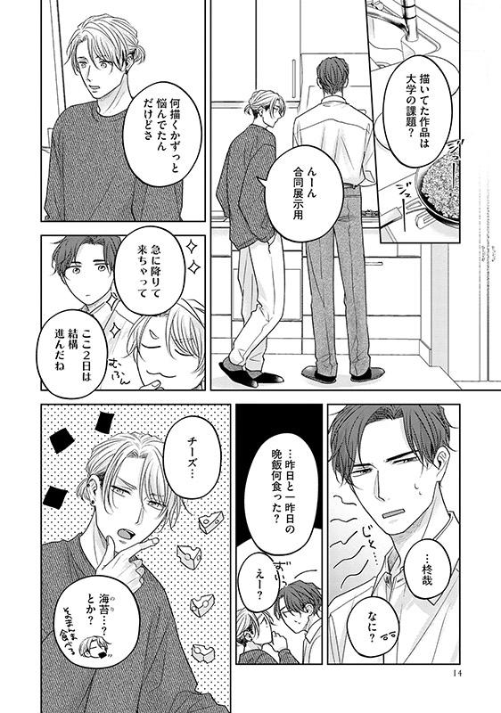 耀が仕事を終え帰宅すると、柊哉は絵に没頭するあまり身体を火照らせていた。