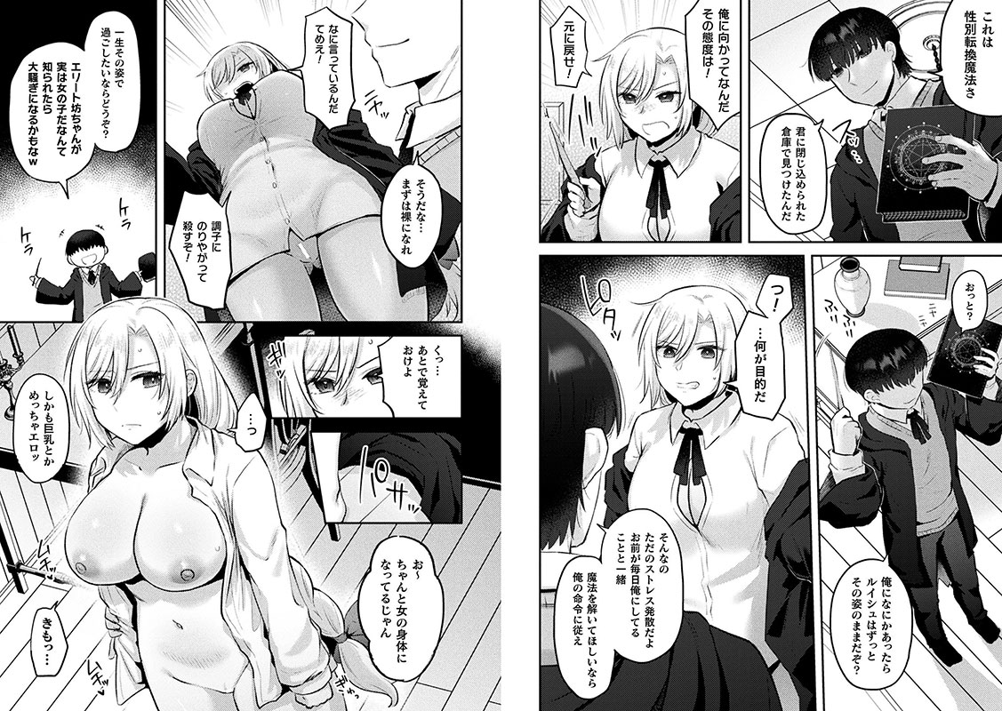 不意打ちでルイシュに魔法をかけると、たちまち豊満な女体へと姿を変えるのだった。