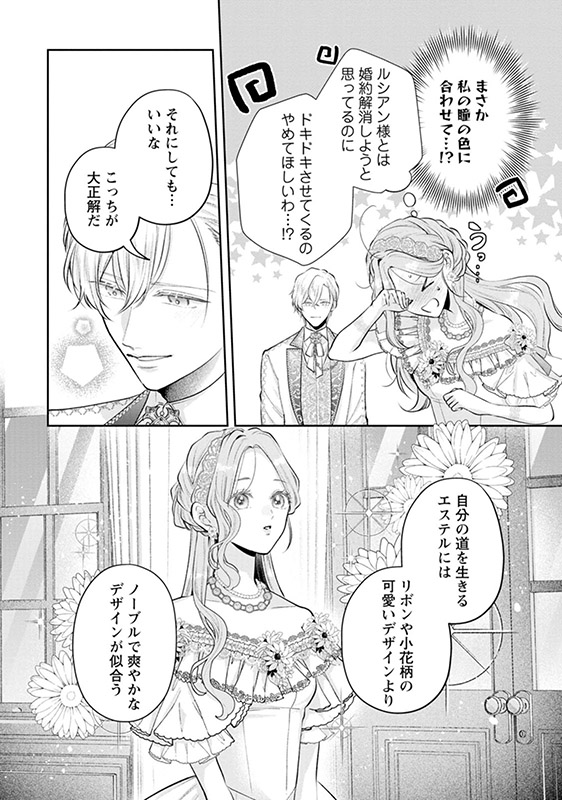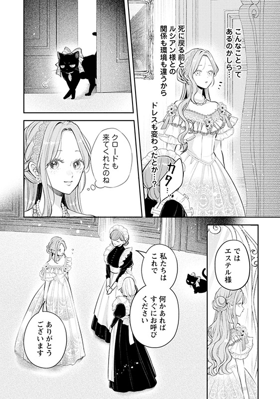 死に戻る前と同じように王太子殿下の誕生日パーティーに参加することになったエステル。1回目とは違うドレスに疑問を持つも、甘い本音がだだ漏れるルシアンにドキドキが止まらなくなってしまう。