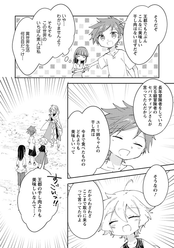土の魔石畑ダンジョン出発に向けて、準備は順調――ところが、ダイーズが巨大猪を3匹も狩ってきて状況は一変!? なぜかハズレポーションで燻製干し肉を大量生産する事態に…。 消費しきれない食材を前に半泣きのユーリは、元S級冒険者のセバスティアンに協力を仰ぎ、干し肉の買取や武器調達のため、転生生活はじまりの地・ギルドのある街へと繰り出すのだが……?