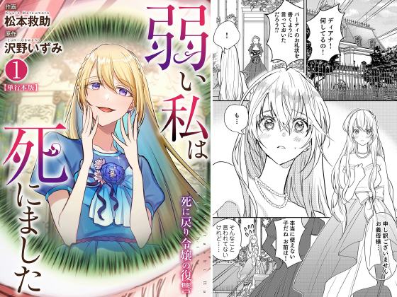 人気コミック『弱い私は死にました〜死に戻り令嬢の復讐〜』が単行本版で登場!第1巻は1話〜4話までを収録!!