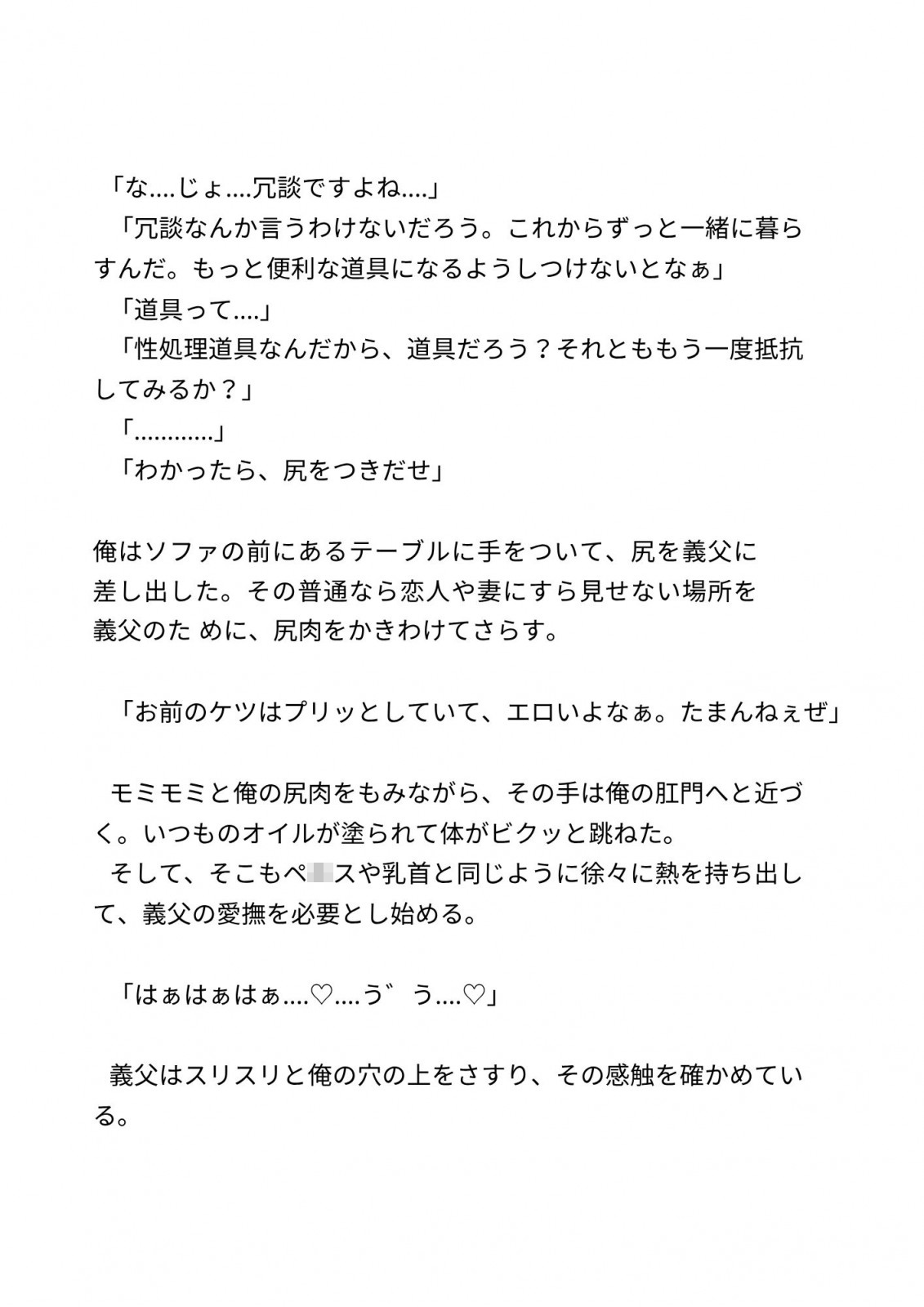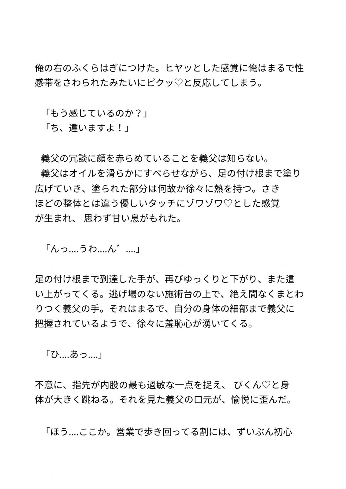 義父(婚約者の父親)が経営するマッサージ店を訪れた主人公が、その義父に変態マッサージを施されて、言いなりにされてしまうお話です。