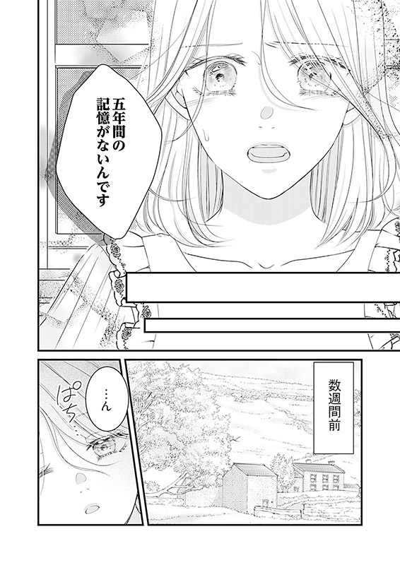 心は18歳なのに、体は22歳!? ボロボロの状態で川辺に倒れていたところを救われたフレドリカは5年間の記憶をなくしていた。優しい夫婦のもとで、畑や家畜の世話をしながら傷を癒やすが、体調はなかなか戻らない。ある日、医師に告げられたのは思いがけない言葉だった。「あなたは妊娠しています」