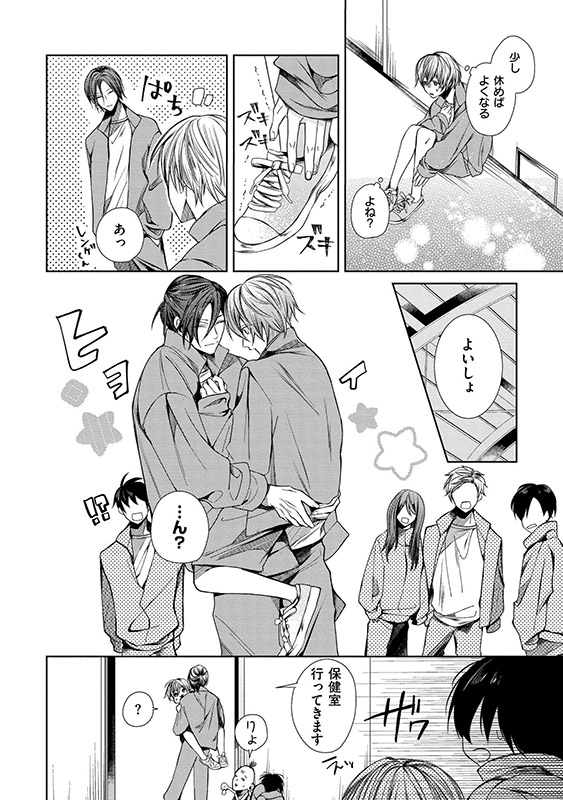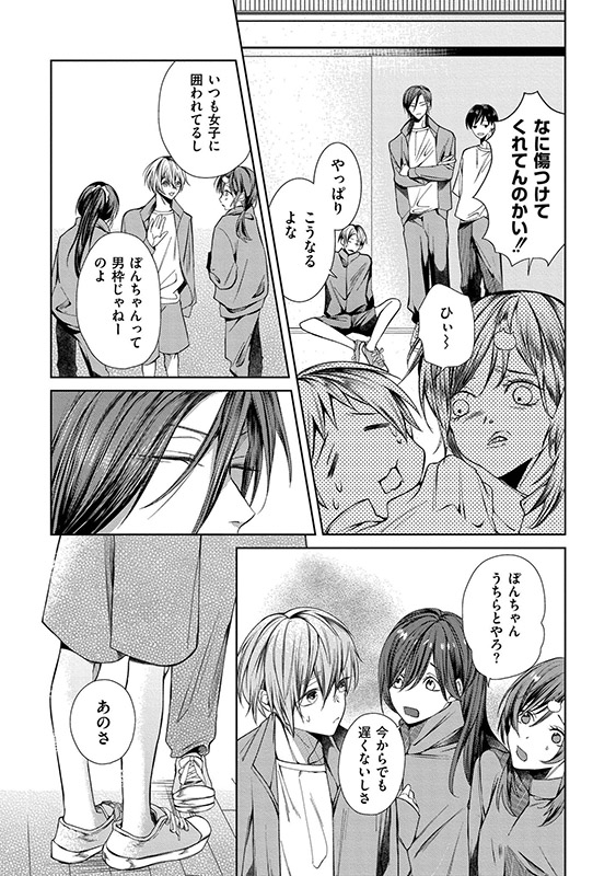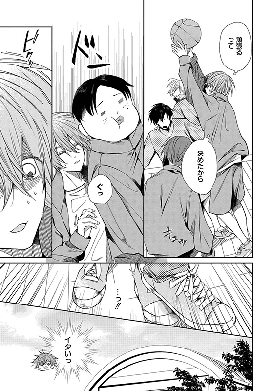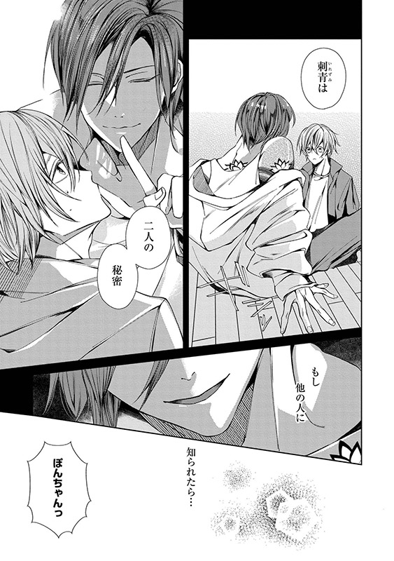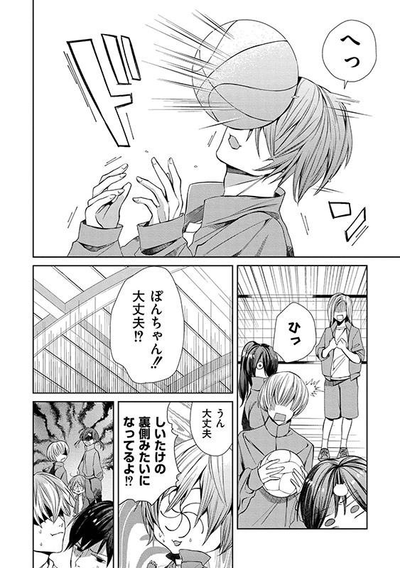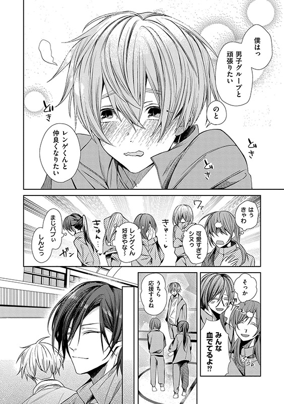 一緒に出ようとぽんちゃんの背中を押すレンゲくん。